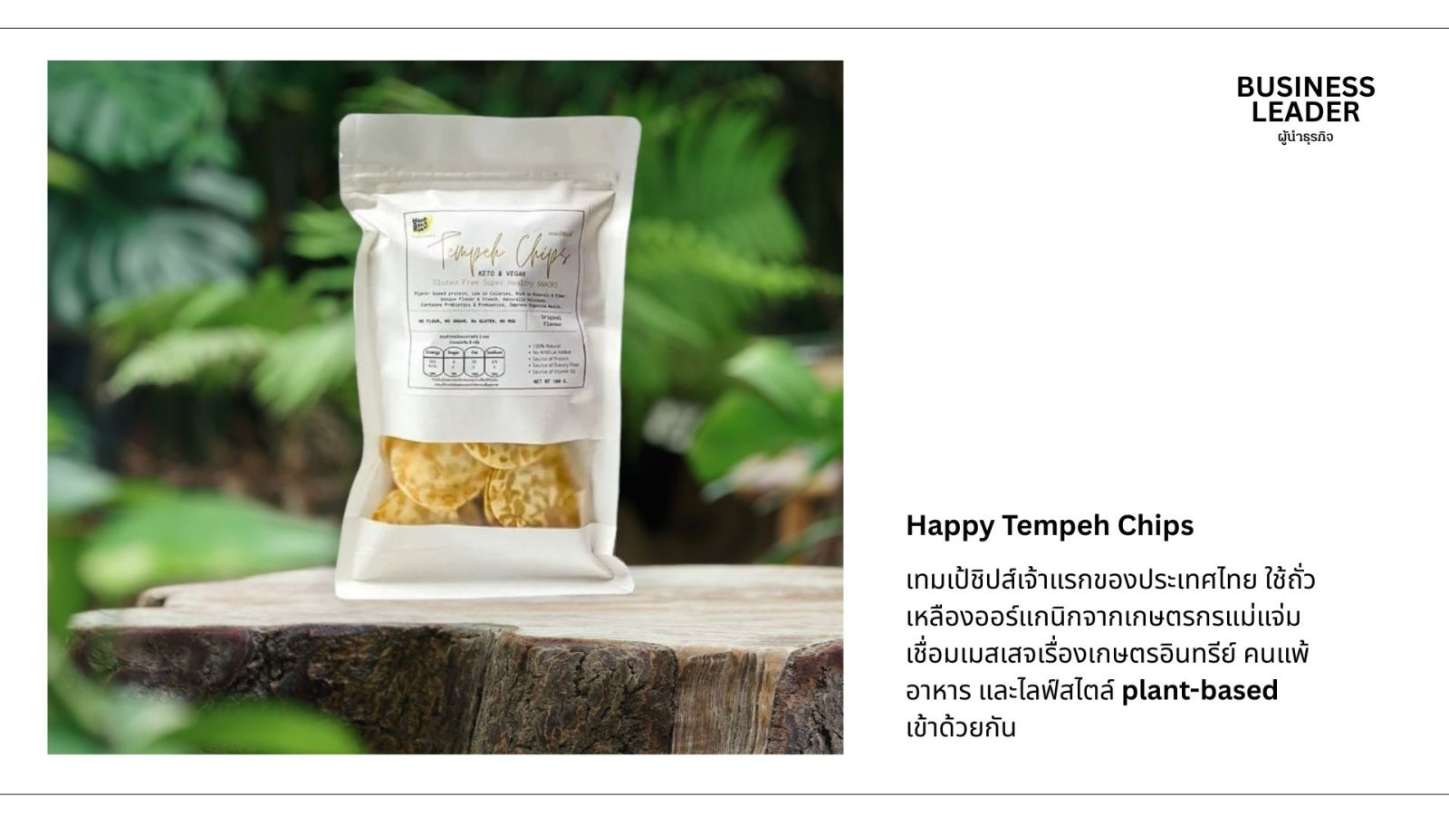 ฝั่งผู้เล่นไทยอย่าง Happy Tempeh Chips กลับเลือกเดินเกมอีกแบบ ด้วยการเล่าเรื่องว่าเป็น “เทมเป้ชิปส์เจ้าแรกของประเทศไทย” ใช้ถั่วเหลืองออร์แกนิกจากเกษตรกรแม่แจ่ม เชื่อมเมสเสจเรื่องเกษตรอินทรีย์ คนแพ้อาหาร และไลฟ์สไตล์ plant-based เข้าด้วยกัน ทำให้แบรนด์ยืนอยู่บนภาพลักษณ์ที่เล็กกว่าแต่มีตัวตนชัด เป็นขนมสุขภาพสำหรับคนขี้แพ้และคนเมืองที่อยากสนับสนุนเกษตรกรไทย มากกว่าจะสู้กันด้วยงบการตลาดหรือสเกลการวางขายในโมเดิร์นเทรด